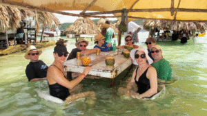 Isla Cholón, ubicada en las Islas del Rosario cerca de Cartagena, es un destino popular para turistas que buscan fiesta y playa. Se caracteriza por sus aguas tranquilas y poco profundas, ideales para disfrutar de actividades acuáticas y por su ambiente festivo, donde embarcaciones se congregan para socializar y bailar. Además, ofrece la posibilidad de disfrutar de la gastronomía local, con vendedores ofreciendo mariscos y bebidas directamente en el agua.